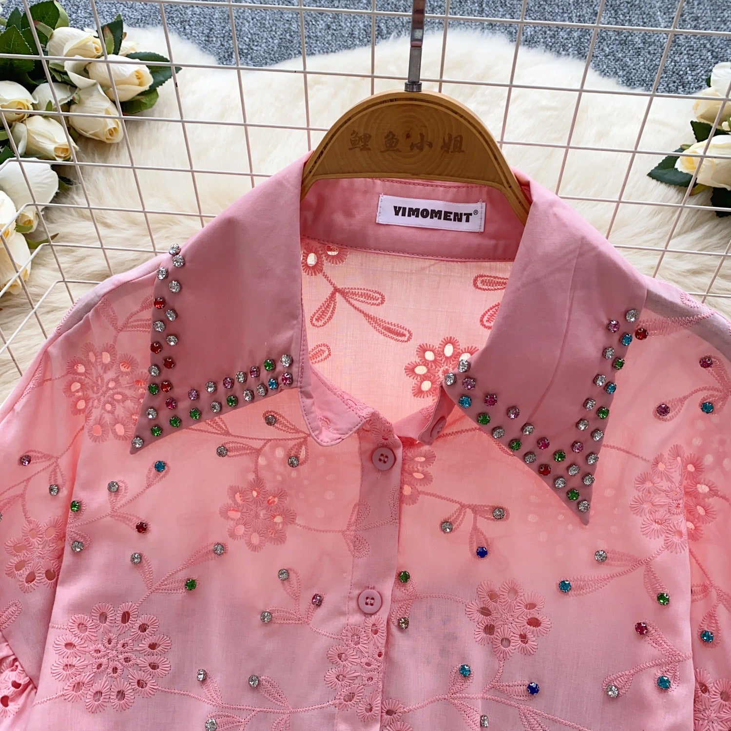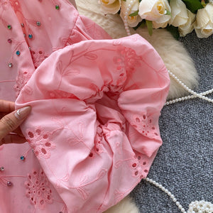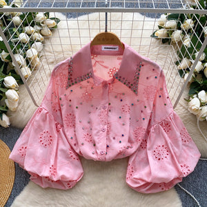 Diamond Hollow Embroidery Top