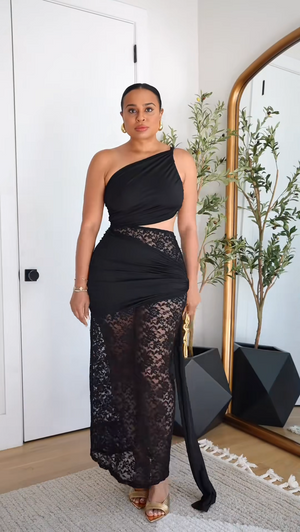 Hollow lace ribbon dress