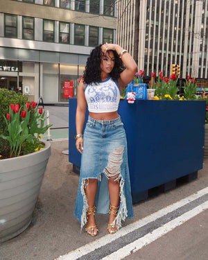 Ripped denim skirt