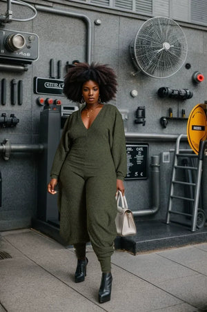 Solid color patchwork jumpsuit
